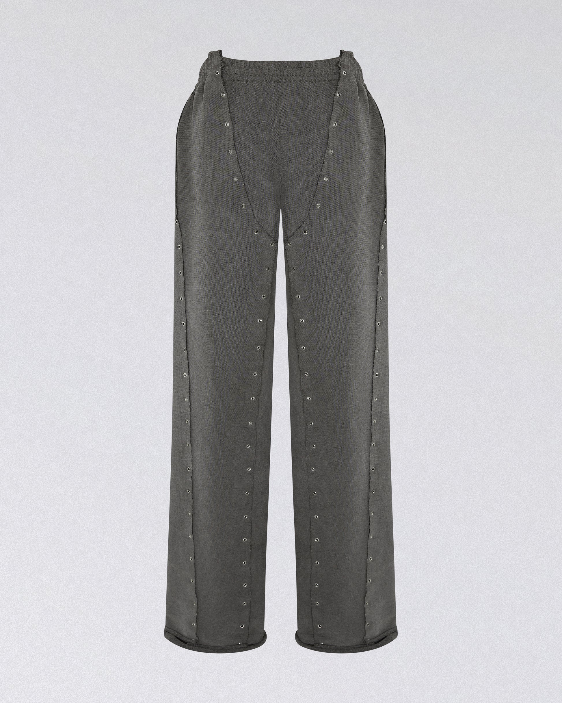 – GREY SWEATPANTS WITH METAL EYELET DETAILING